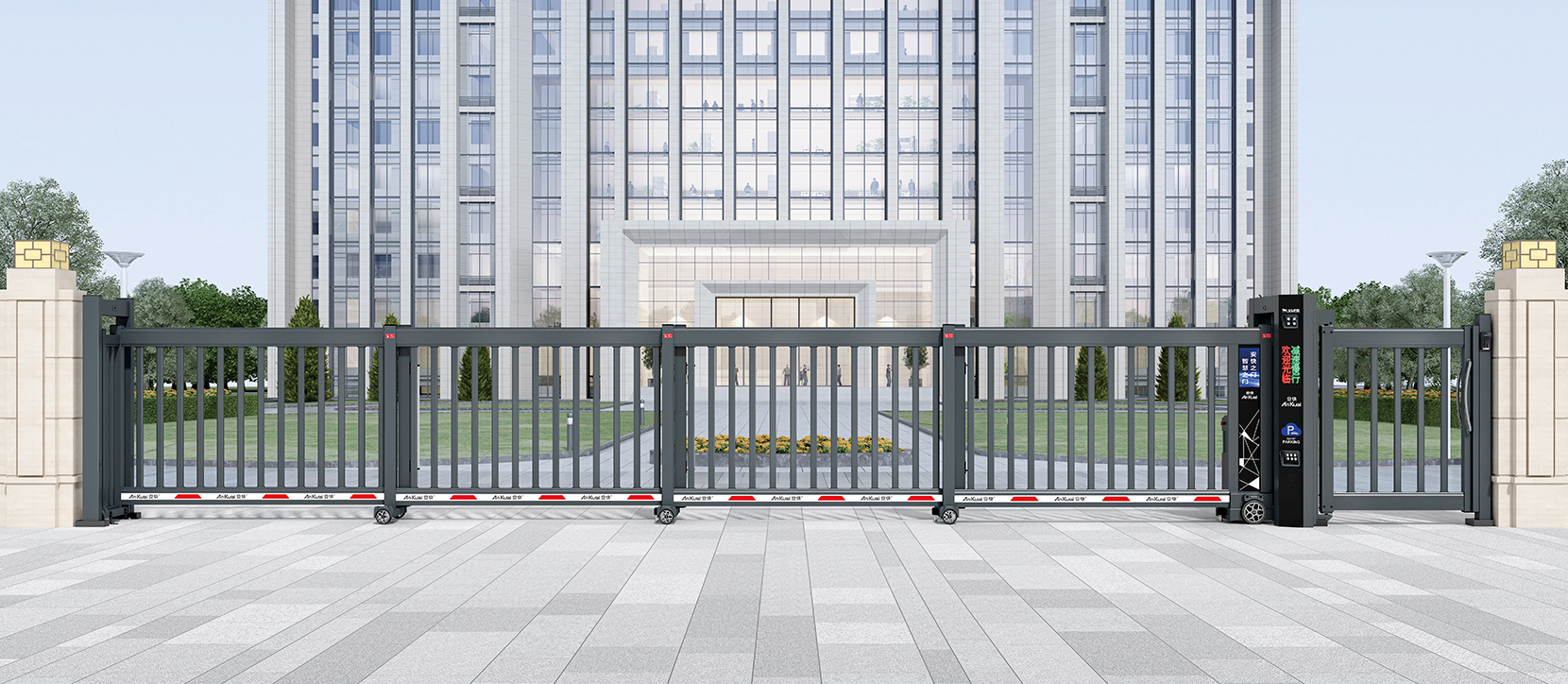 搭配車牌識別系統,實現無人值守車輛快速通行及收費功能,支持遠程操控和實時監控,操作簡單,效率高?,適合超大門洞凈空要求的場所?